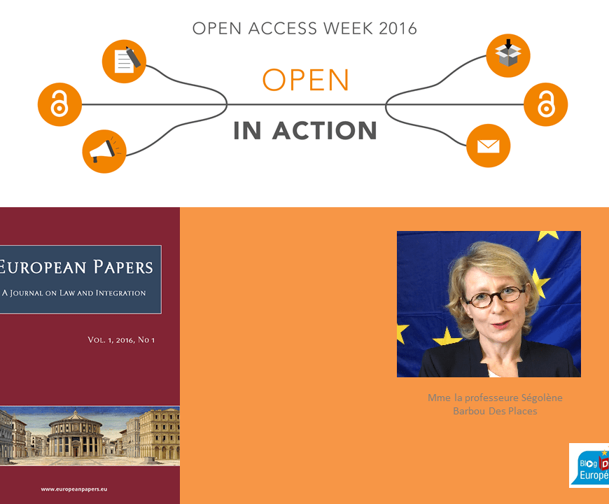 Dans cette interview la professeure Ségolène Barbou Des Places nous explique comment est née la récente revue European Papers, Journal of Law and Integration. Elle nous parle du montage de ce projet ainsi que des caractéristiques de cette revue. Pour en savoir plus sur cette revue: Pour accéder aux deux premiers numéros de cette revue Pour accéder au forum de cette revue Pour contribuer à … Continuer de lire Retour d’expériences sur European Papers, Journal of Law and Integration
