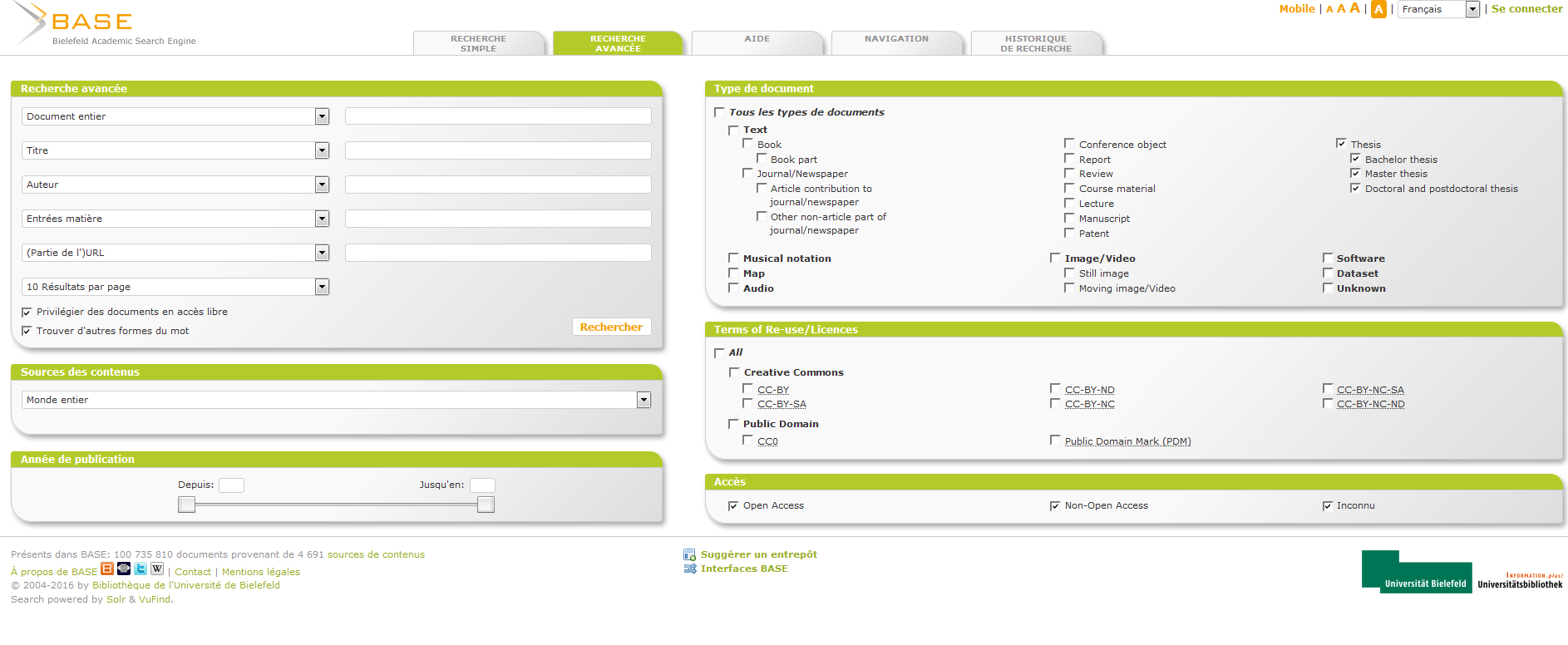 Face à ces possibilités, comme pour toute recherche juridique trouver la thèse qui vous intéresse sera donc une affaire de mots clefs pertinents et de moteurs de recherche plus ou moins performants avec des possibilités très fines de recherche avancée. Vous pourrez aussi tester le moteur Base considéré par certains bibliothècaires comme un Must en matière de recherche bibliographique. Son onglet recherche avancée comporte notamment une fenêtre sur les thèses qui permet de trouver aussi des mémoires de Master. Une fenêtre permet également de limiter sa recherche aux thèses en Open Access.