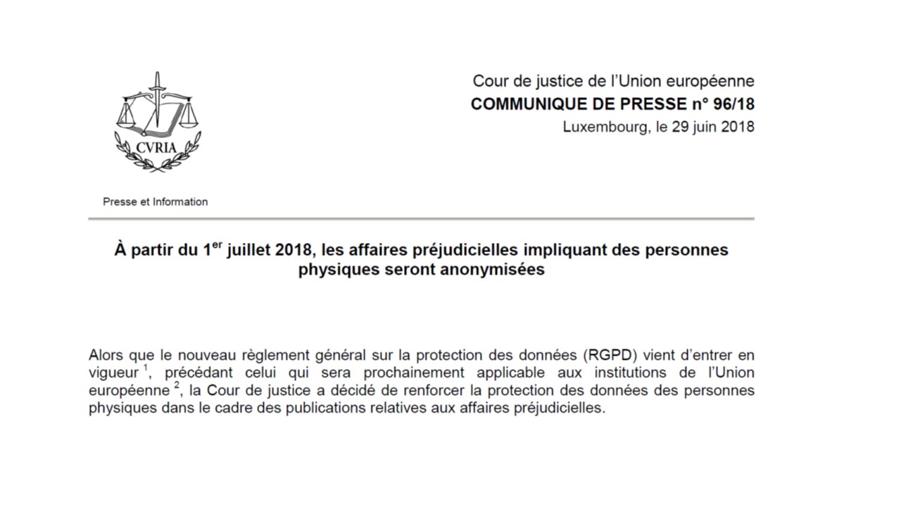 Pour télécharger le communiqué de presse de la CJUE sur sa nouvelle politique d’anonymisation cliquez ICI.