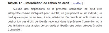 L’article 17 de la Convention a été rarement invoqué par les requérants à l’encontre des Etats après 2007. La future jurisprudence de la Cour permettra d’éclairer cette problématique d’articulation des deux dispositions et de leur application.