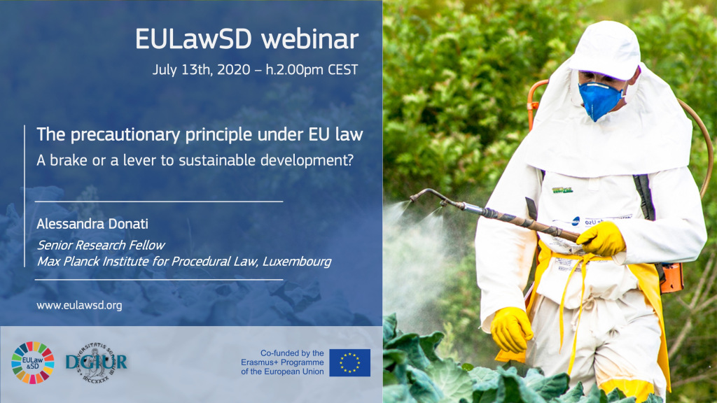 We are pleased to announce a third session of the 2020 EULawSD webinar series, which will take place on 13 July 2020 at 2pm CEST. Alessandra Donati, Senior Research Fellow at the Max Planck Institute Luxembourg for Procedural Law, will join us for a dialogue on ‘The Precautionary Principle Under EU Law: a Brake or a Lever to Sustainable Development?’ The webinar will be visible on EULawSD’s YouTube channel and at this link.