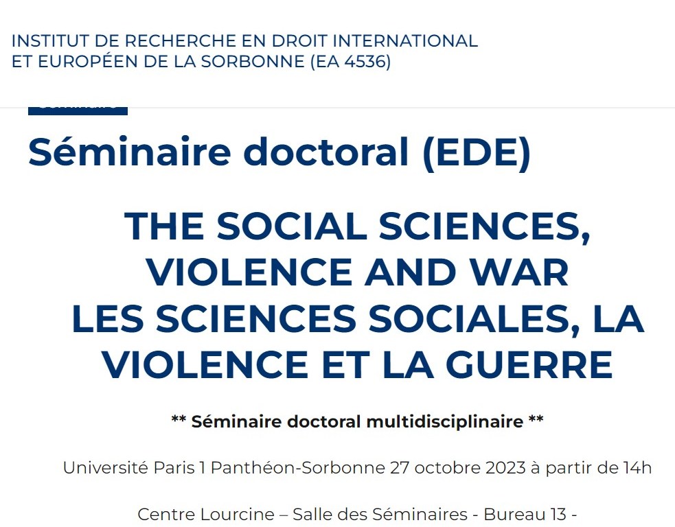 Séminaire doctoral des Entretiens de la Défense européenne (EDE), organisé par l’université Paris 1 Panthéon-Sorbonne (IREDIES et Sorbonne War Studies), en partenariat avec l’École doctorale du Collège européen de sécurité et de défense (CESD), séminaire fermé, le jeudi 27 octobre (13h – 18h en Salle des Séminaires – Centre Lourcine).