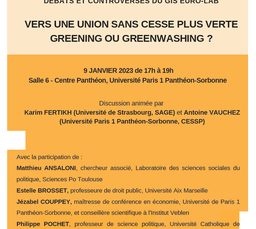 Le CERIC et le Laboratoire de théorie du droit organisent pour la 2ème année un cycle de séminaires « Controverses sur les méthodes en droit de l’Union européenne ». Les séminaires ont lieu uniquement sur Zoom et débutent pour ce second semestre le 20 janvier 2023.  Programme Les questions méthodologiques occupent une place croissante dans les débats contemporains en droit de l’Union européenne. Les européanistes s’accordent largement … Continuer de lire cycle de séminaires « Controverses sur les méthodes en droit de l’Union européenne »