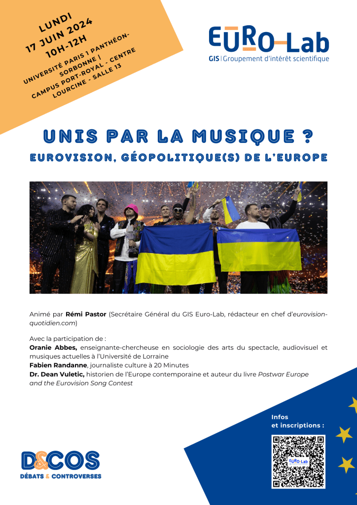 >>> Informations et inscriptions sur le site du GIS Euro-Lab : https://gis-eurolab.fr/evenements/debats-et-controverses-unis-par-musique-eurovision-geopolitique-s-leurope-0