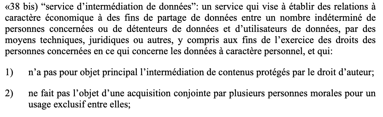 Ainsi, l’omnibus comporte une nouvelle définition dans un projet d’article 38 bis du Data Act (p. 25) :